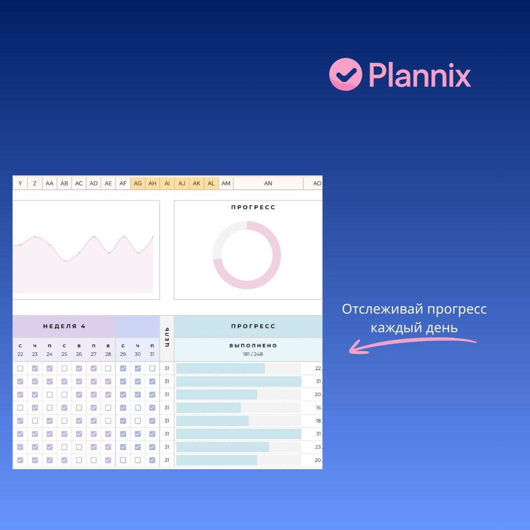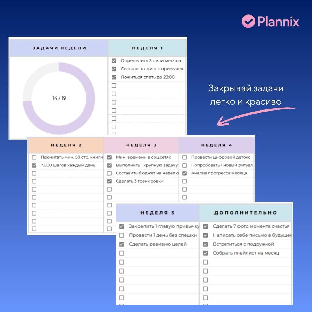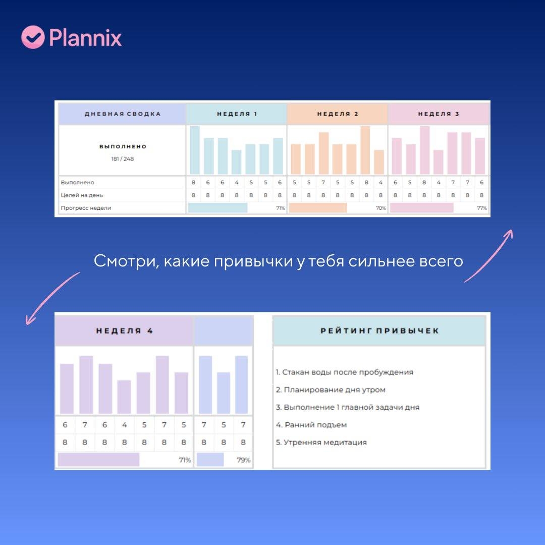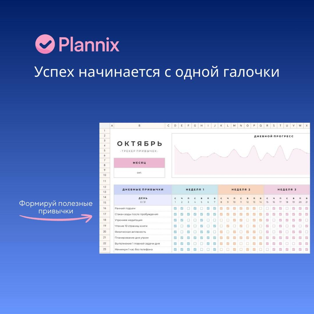 Этот инструмент помогает сохранять мотивацию, формировать систему и превращать хаос в осознанность. С Plannix маленькие шаги становятся видимыми результатами, а дисциплина — частью твоего стиля жизни.